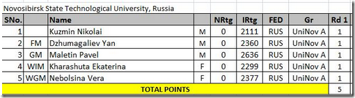 Composition of Chess Team Novosibirsk State Technological University, Russia :-