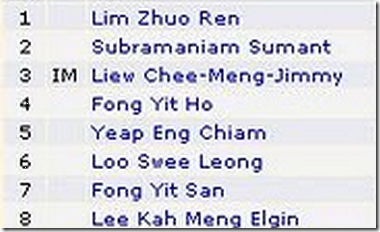 During the closing ceremony, it was announced that the top eight winners in this year’s National Closed 2011 plus Malaysia’s top two players, IM Mas Hafizulhelmi and IM Mok Tze Meng has been chosen to undergo selection trials to select the final six players to the SEA Games in Indonesia. The final eight winners are shown below:-