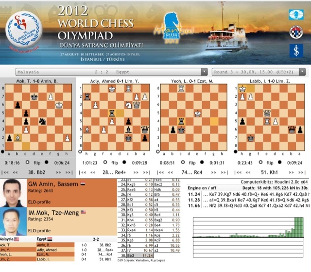 Latest: IM Mok has won his top board game against Amin, so Malaysia is 2-0 up! Our IMs beat Egypt’s two GMs! Fantastic!